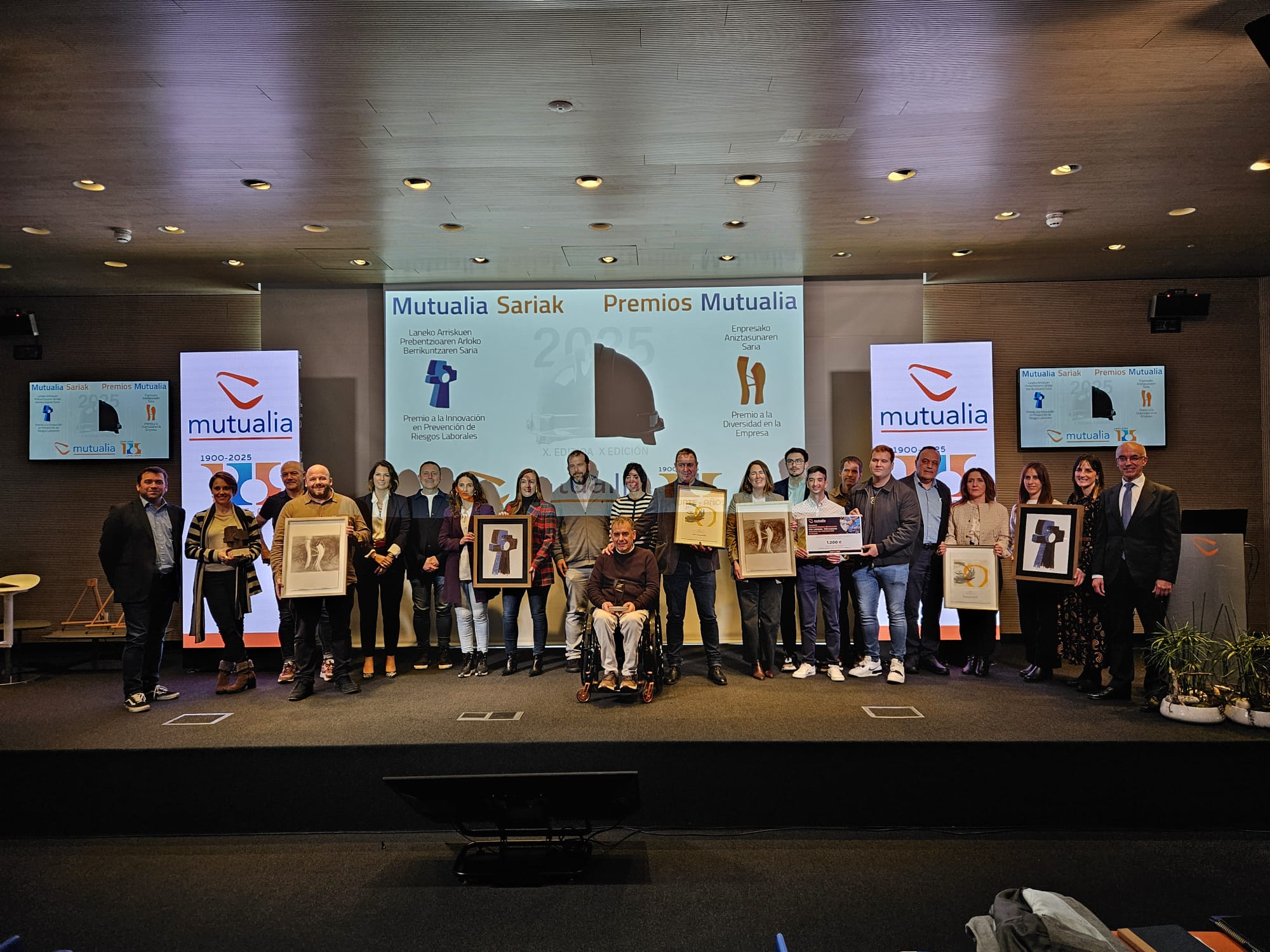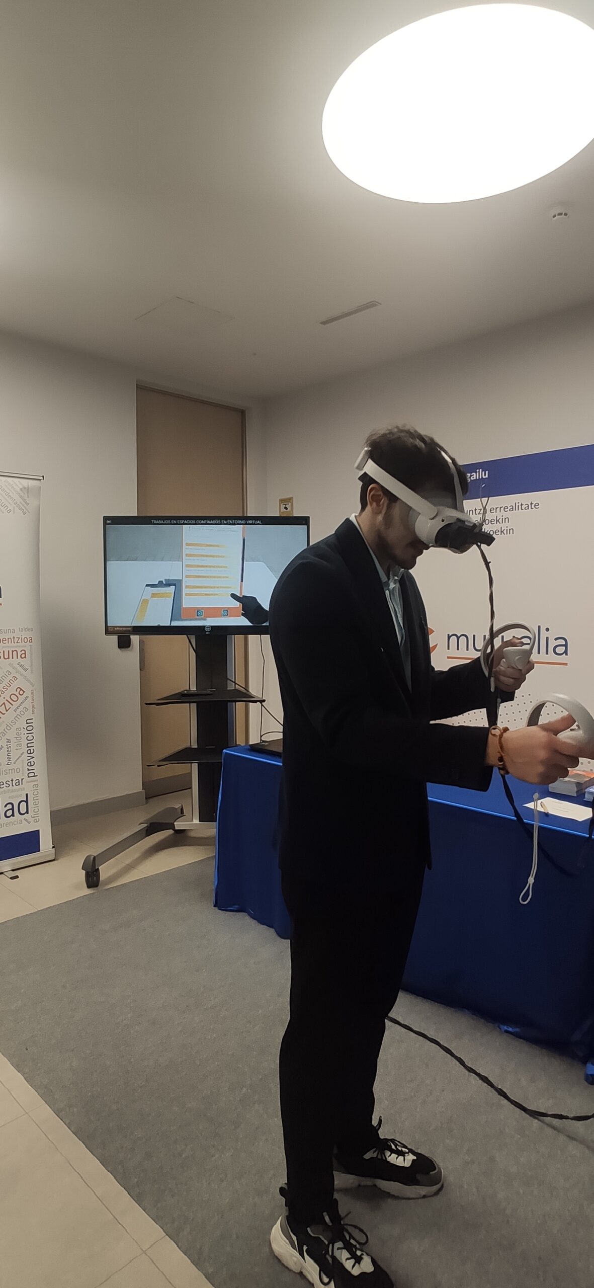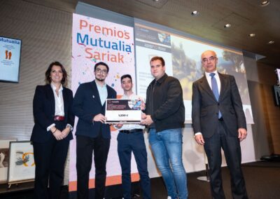 Adrián Herguedas Cantalapiedra, Francisco Páramo Aguado y David Gómez Diez, de 2º de Grado Superior de Laboratorio de Análisis y Control de Calidad, acudieron el pasado marzo a Vitoria a la Entrega de los XII Premios “Miradas de Prevención”, convocado por Mutualia. Acompañados por su tutor, Antonio Martín Cuesta, y su profesora de Empresa e Iniciativa Emprendedora, Miriam Pascual Martín, ejercieron de jurado en las exposiciones de prácticas innovadoras en PRL por parte de diversas empresas del sector indistrial, además de recoger su galardón y disfrutar del humor del monologuista Dani de la Cámara. Su vídeo, que obtuvo un premio de 1.200 Euros, titulado “La Prevención, nuestra Mejor opción” plasma desde un punto de vista humorístico qué ocurre cuando dos despistados trabajadores de un laboratorio no adoptan las medidas preventivas al cometer una imprudencia profesional. Al finalizar el acto, tuvieron la ocasión de interactuar con empresas invitadas en diversos stands, que presentaban desde un exoesqueleto hasta simuladores de realidad virtual en Prevención de Riesgos Laborales.