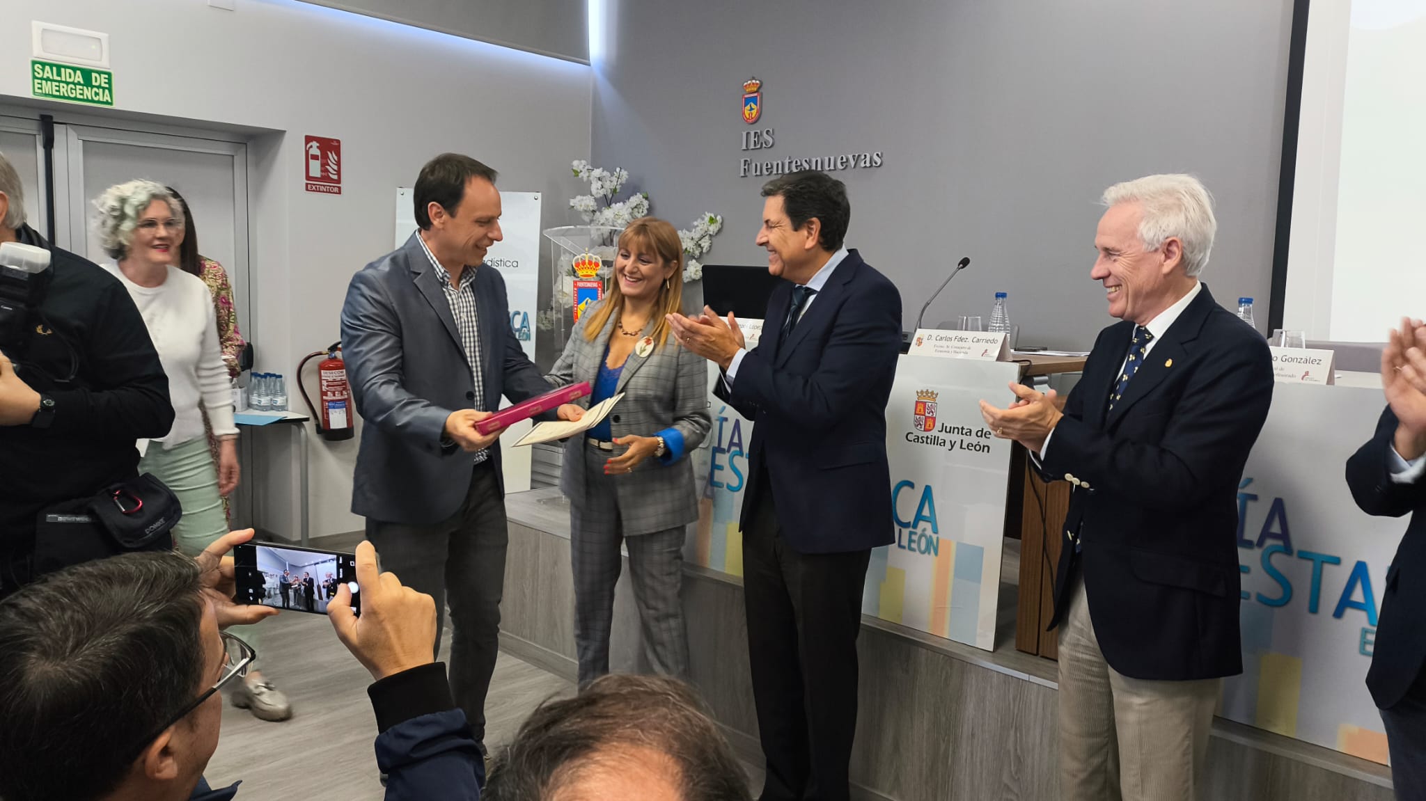 Irene Rodríguez Pino y Alba Rodríguez Valdés, de 2° de #FP de Laboratorio Clínico y Biomédico, tutorizadas por Luis Miguel Cabezas, reciben de manos del Consejero de Economía y Hacienda @cfcarriedo su accésit en Premios a trabajos relacionados con la actividad estadística 2025👏